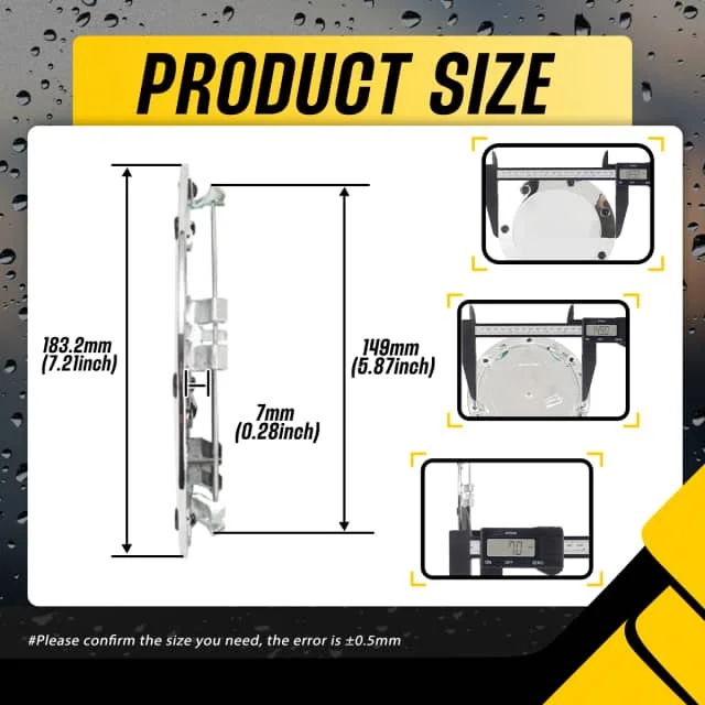 ⚙ Size:Outer Diameter: 183.2mm/7.21in, Inner Diameter: 149mm/5.87in , Clip Length: 7mm/0.28in.