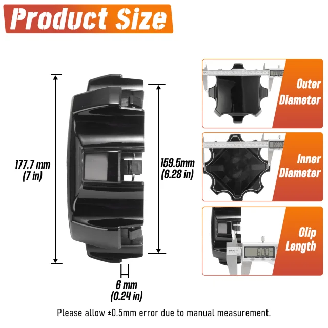 ⚙ Size:Outer Diameter: 177.7mm/7in, Inner Diameter: 159.5mm/6.28in , Clip Length: 6mm/0.24in.